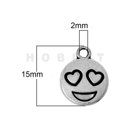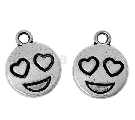 1x Bedeltje Emoticon Donker Zilver15 x 12 mm