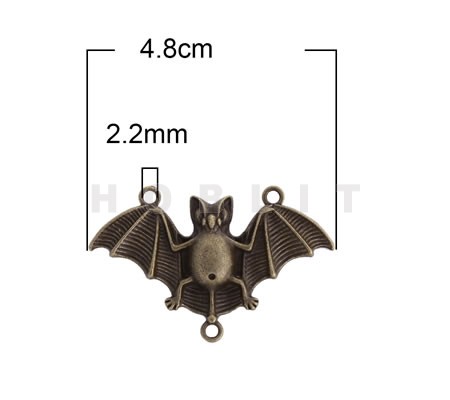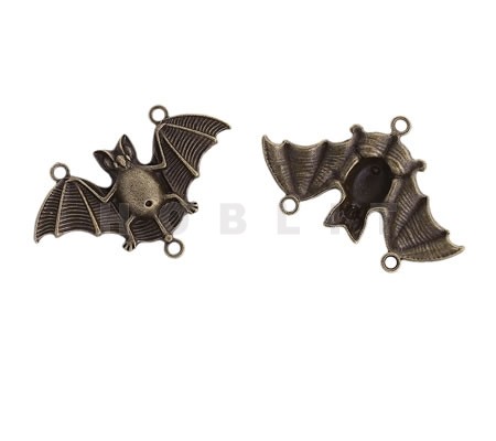 1x Grote Connector/bedel Vleermuis Donker Zilver48 x 30 mm