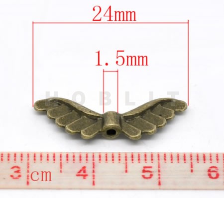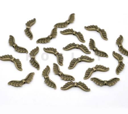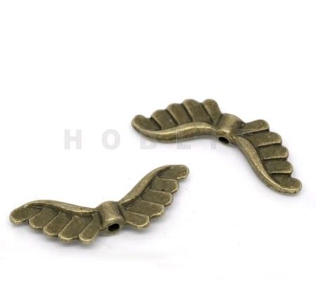 1x Metalen Engel Vleugetjes Kraal Brons