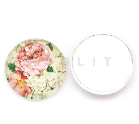 Glazen cabochon bloemen zwart/rood 16mmVoor Cabochonhouder 16 mm